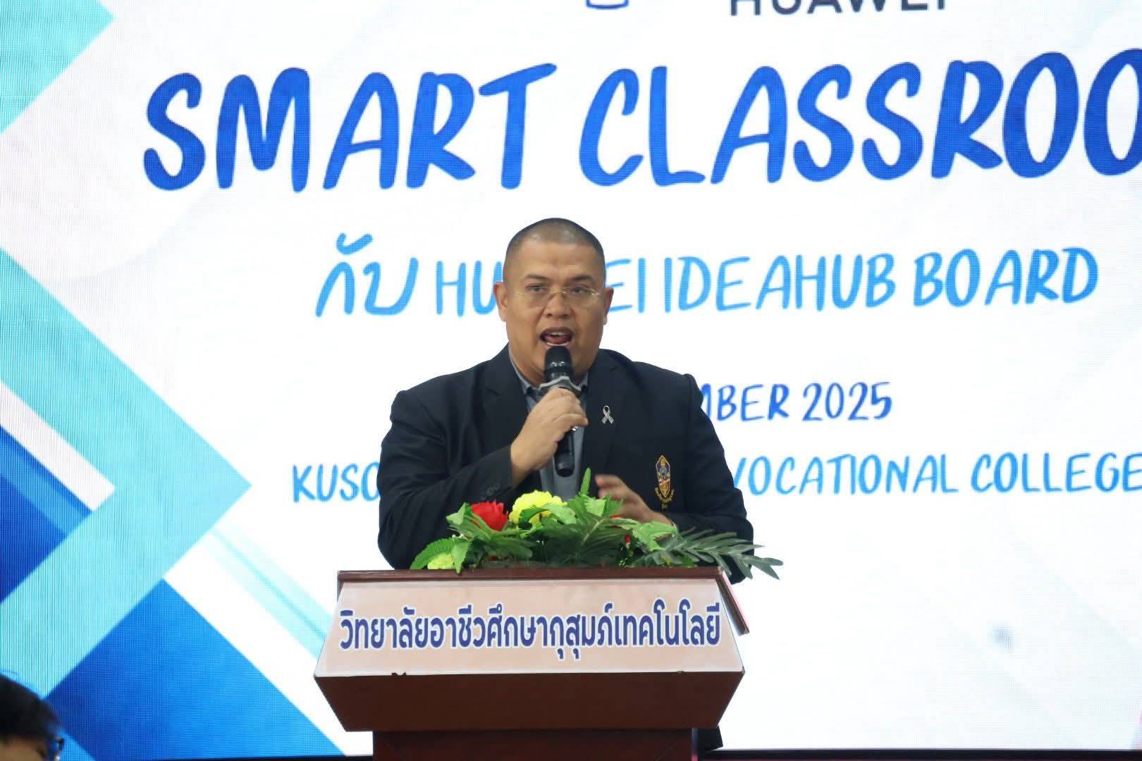 วิทยาลัยอาชีวศึกษากุสุมภ์เทคโนโลยี ร่วมกับ Huawei ICT Academy ได้จัดกิจกรรมอบรมเชิงปฏิบัติการ “SMART NETWORK for EDUCATION” เพื่อเปิดประสบการณ์การเรียนรู้ระบบเครือข่ายอัจฉริยะสำหรับการศึกษา ในวันที่ 26 ธันวาคม 2568 ณ วิทยาลัยกุสุมเทคโนโลยี โดยได้รับเกียรติจาก ผศ.ดร.ศุภเสฏฐ์ คณากูล ผู้อำนวยการวิทยาลัยอาชีวศึกษากุสุมภ์เทคโนโลยี ประธานในการเปิดการอบรม